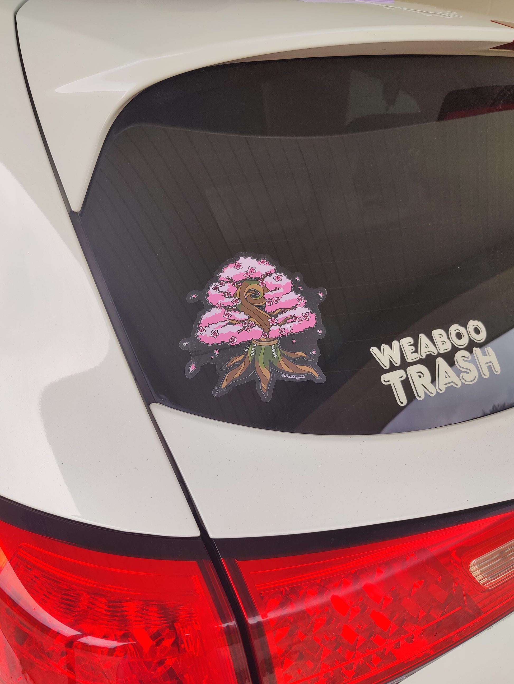 Cherry Blossom Sapling 5" Clear Matte Car Sticker